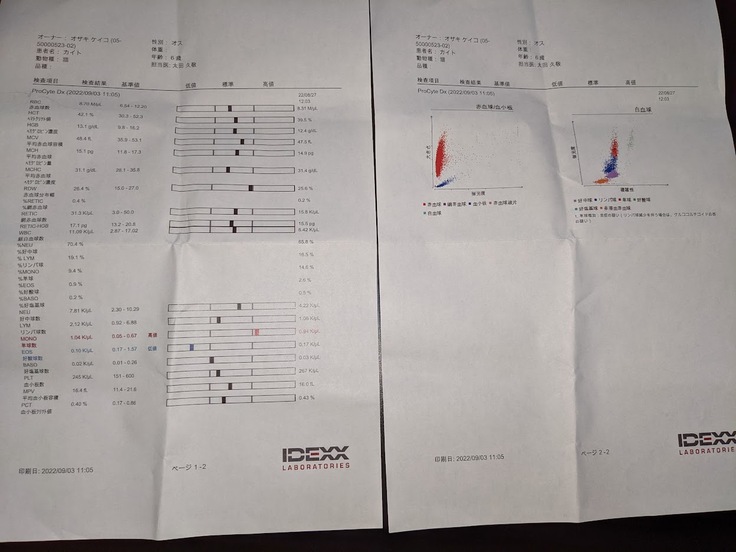 9月3日の血液検査結果表