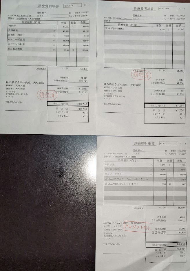 8月27日と9月3日の診察費明細書