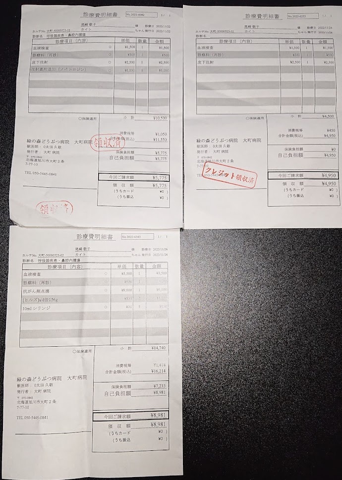 ◎最後の治療明細書と葬儀代金