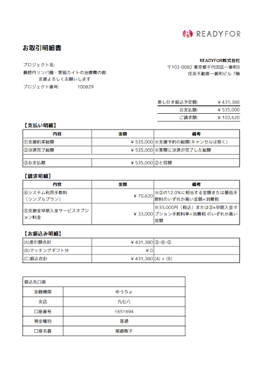 クラウドファンディング手数料 103,620円
