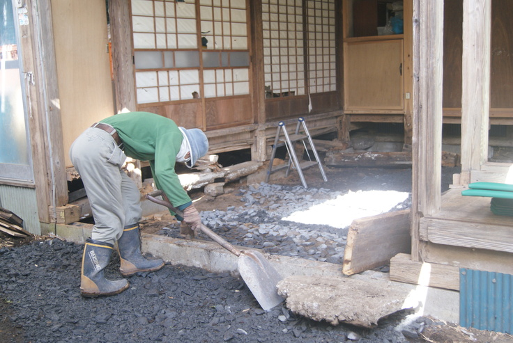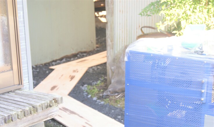作業場の建物の入り口に引き戸を設けるため、段差もあります。