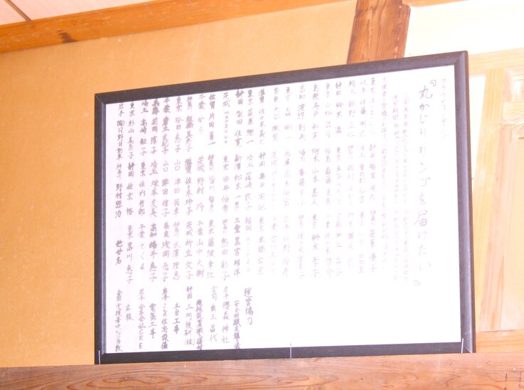お礼の手紙、農園事務所への支援者名の掲載、まごころリンゴ5kg