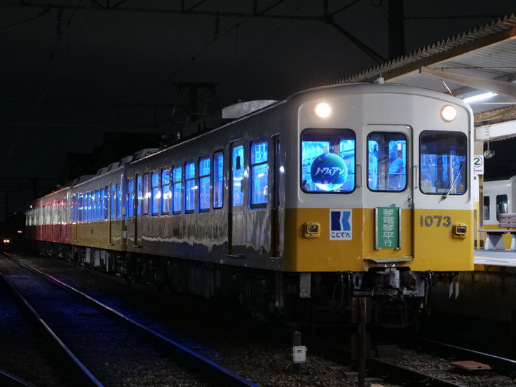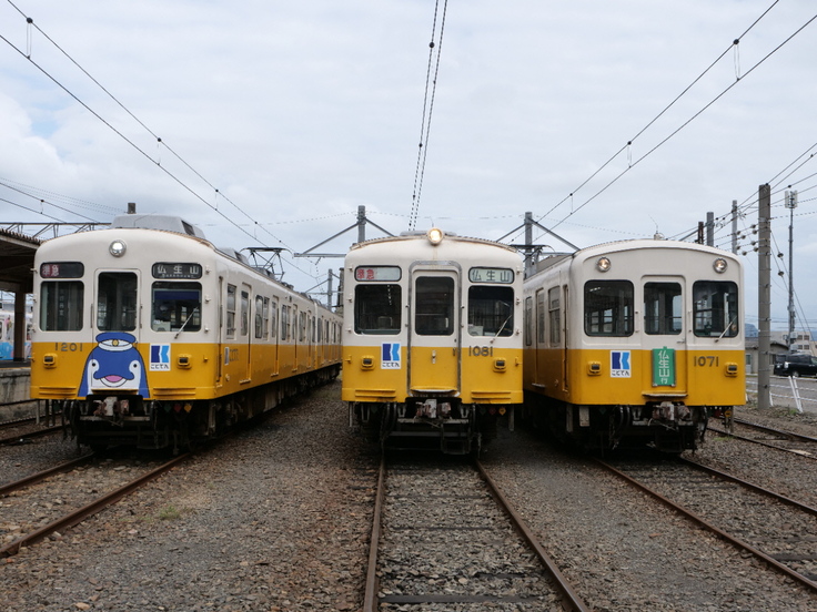 営業運転でも見られる組み合わせですが、琴平方が1070形となることはごく稀で、沿線住まいでもないと撮影できない組成にしました。