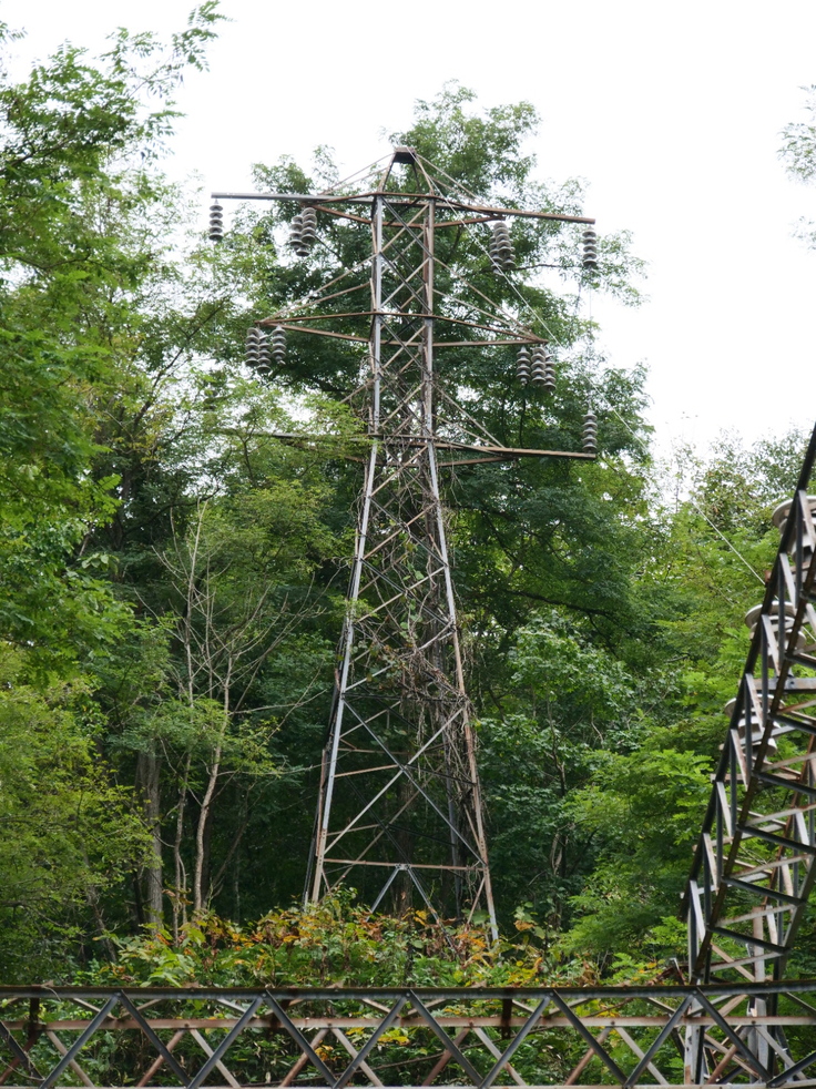 変電所のすぐ上(夕張方)には鉄塔の姿もあります。