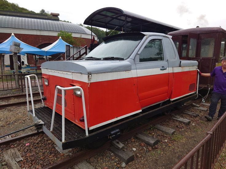駐車場には炭鉱で活躍していたらしい機関車が無造作に置かれています。