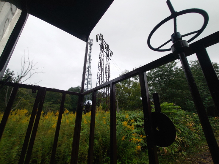 クマよけにオーディオを鳴らしながら、幌内変電所跡を観察しました。