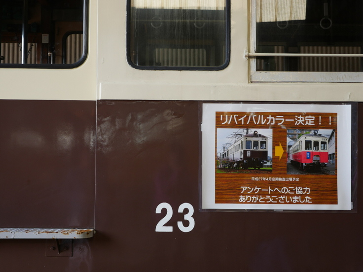 その何だかよくわからない茶色い古い電車が、沿線の方やファンへのアンケート結果でファンタンゴレッドになるとのPOPを見かけました。