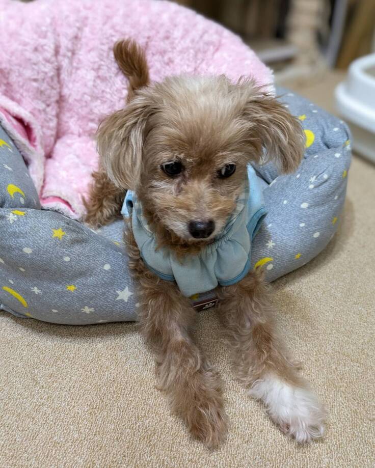 (抜糸をして、術後服から着替えたちゃわ🐶)