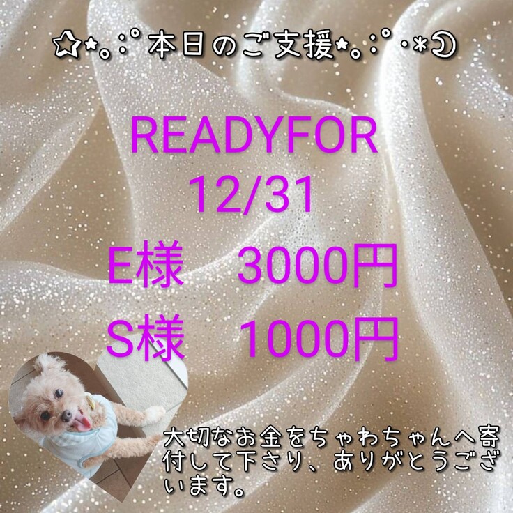 ご支援金は全て、ちゃわの手術費、入院費、通院費に充てさせて頂きますので、リターンに費用を掛けられず、申し訳ございません。