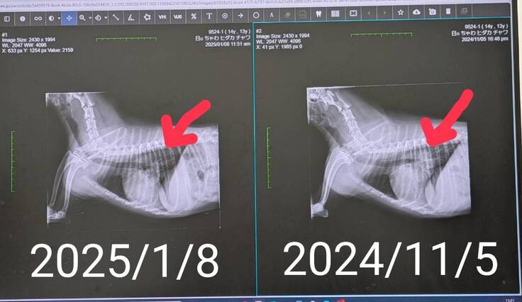 ちゃわちゃんの心臓は、レントゲンでも確認出来るくらいに、小さくなってました!良かったです☺️
