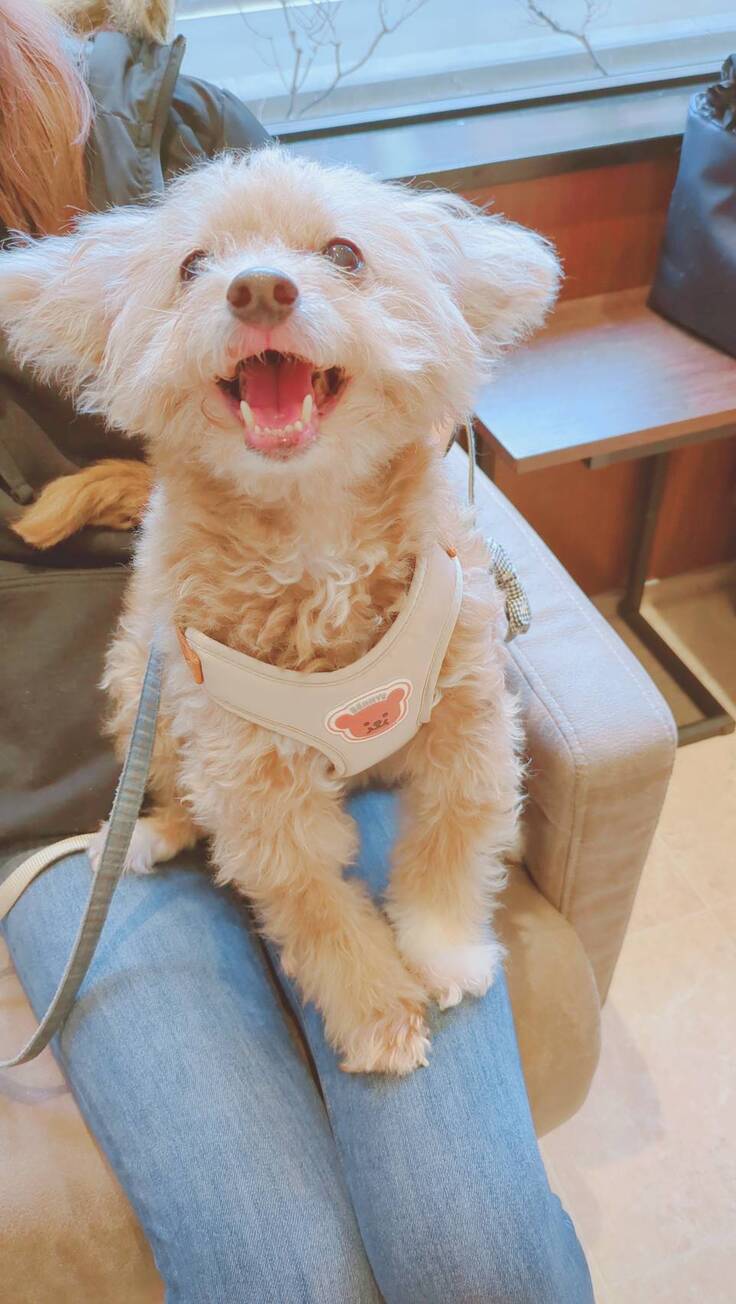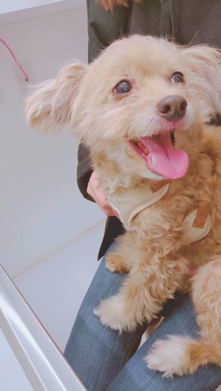 病院の待合室では、周りの患者さんやワンコに愛嬌を振りまき、楽しさ全開で↑の笑顔です(*^_^*)