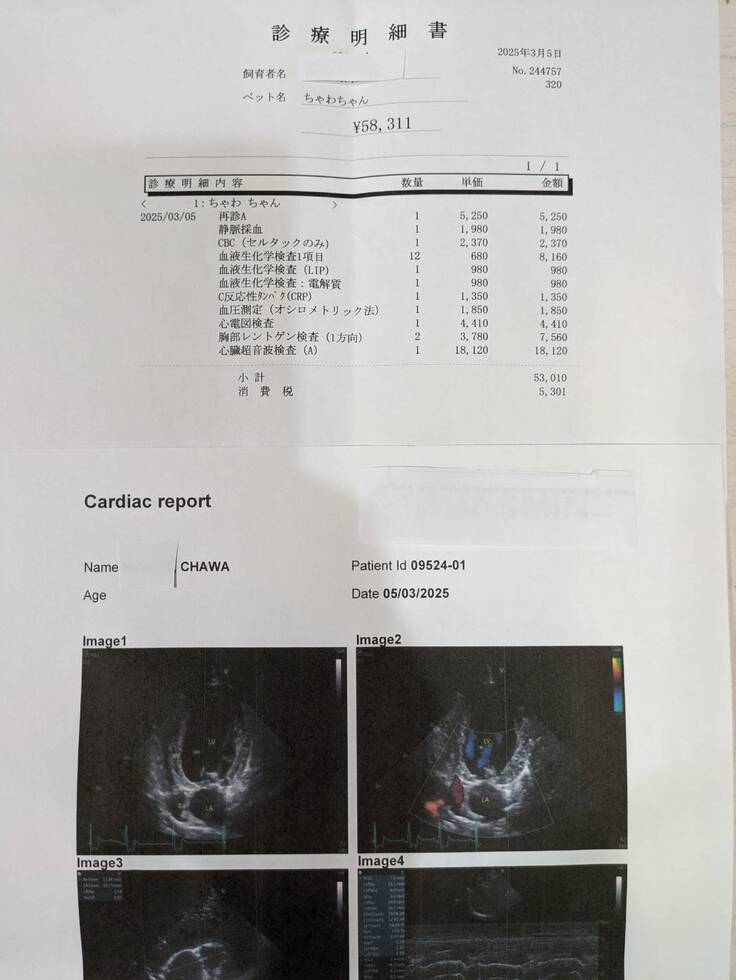検診の結果は問題なく、心臓も小さくなっており、血液の逆流も見られないとの事でした。