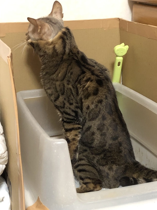 体調崩してからのチャイは排泄前になると鳴いて教えてくれるようになったので、(甘えたい時、ご飯の時とは明らかに違う鳴き方なので私は分かるようになりました)鳴くたびにトイレにチャイを誘導して砂の感触を思い出させるところから始めました。