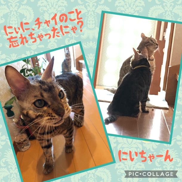 ピンを見てチャイは嬉しかったのかニャーニャー鳴いて側に行きたそうにしてましたが、ピンは一定の距離以上近寄られると嫌なようで…😅
