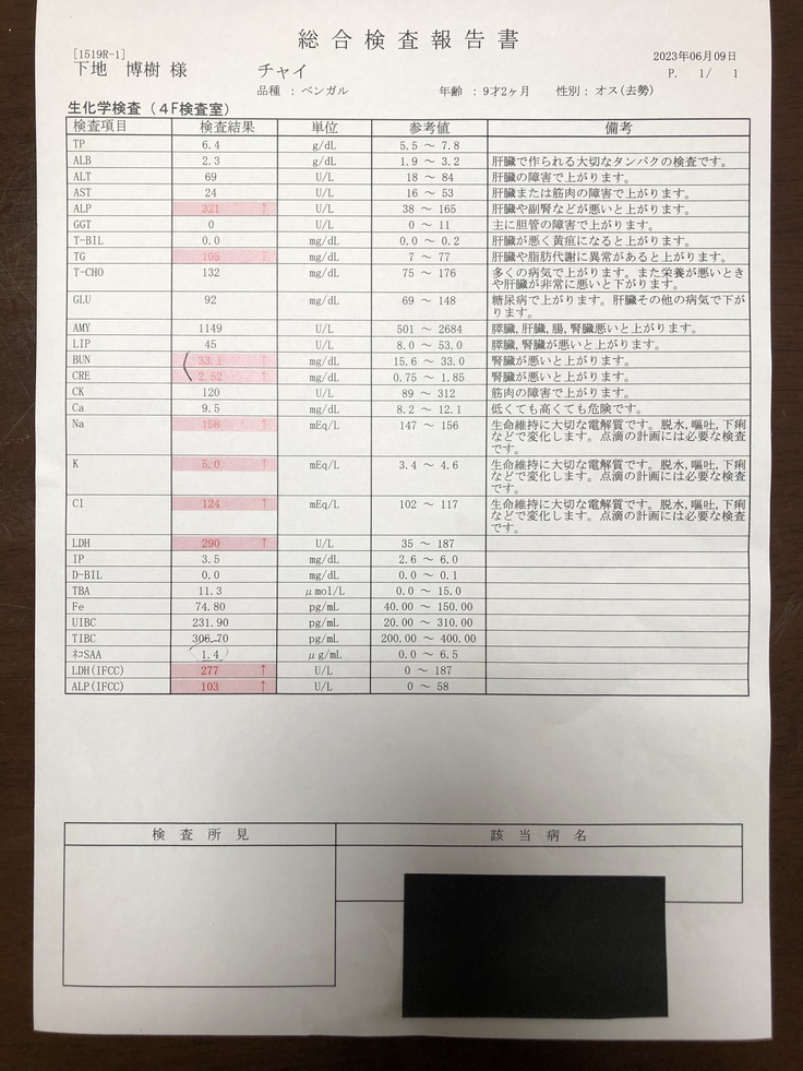 今日の血液検査の結果は腎臓の数値が高く出てしまい、慢性腎臓病と診断されてしまいました😭