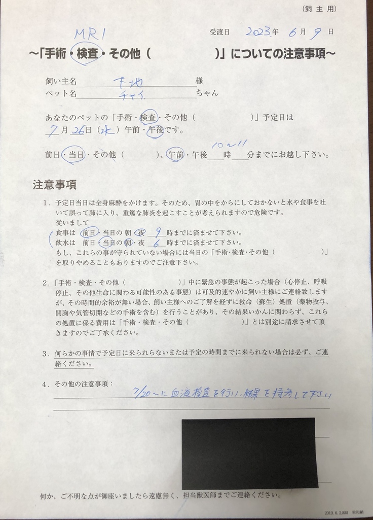 MRIは術後3ヶ月が過ぎた7/26に決まりました。