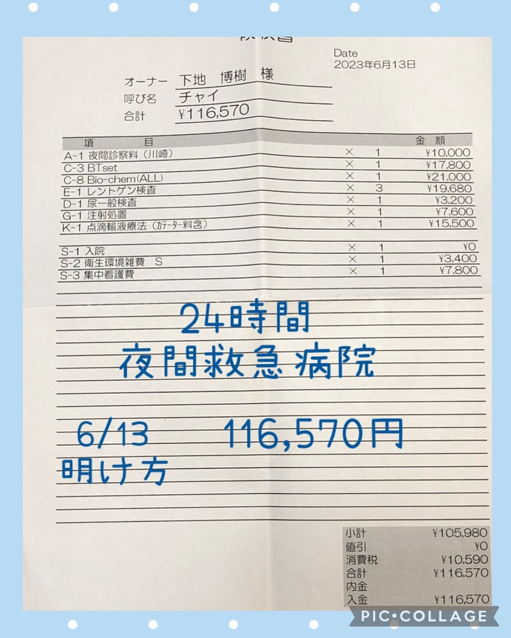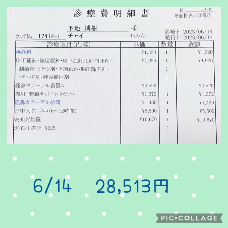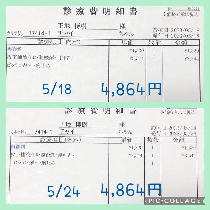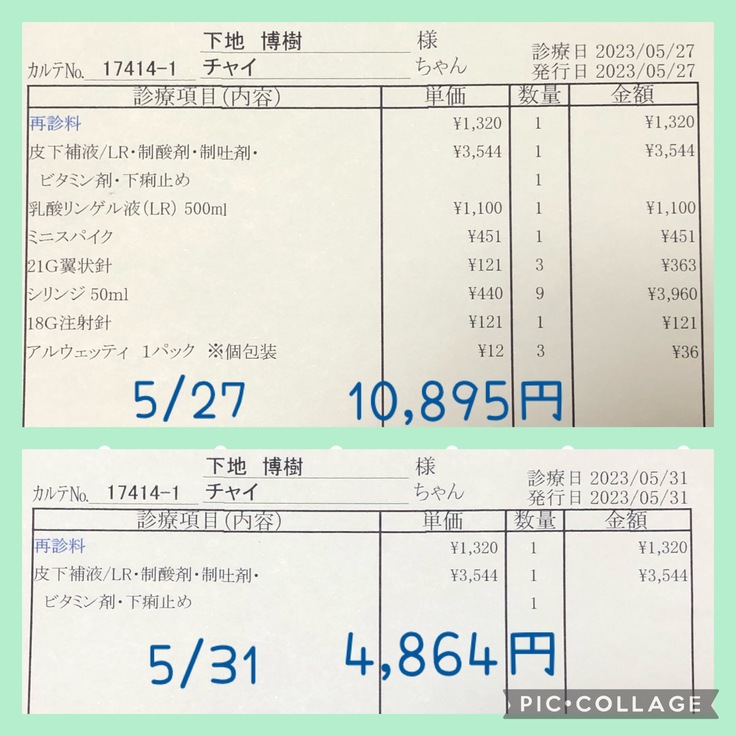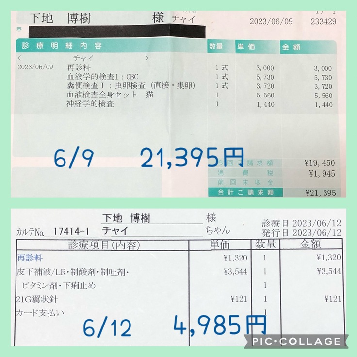 数回に渡り、ご報告させていただきましたが、チャイの診療明細のご報告は以上となります。