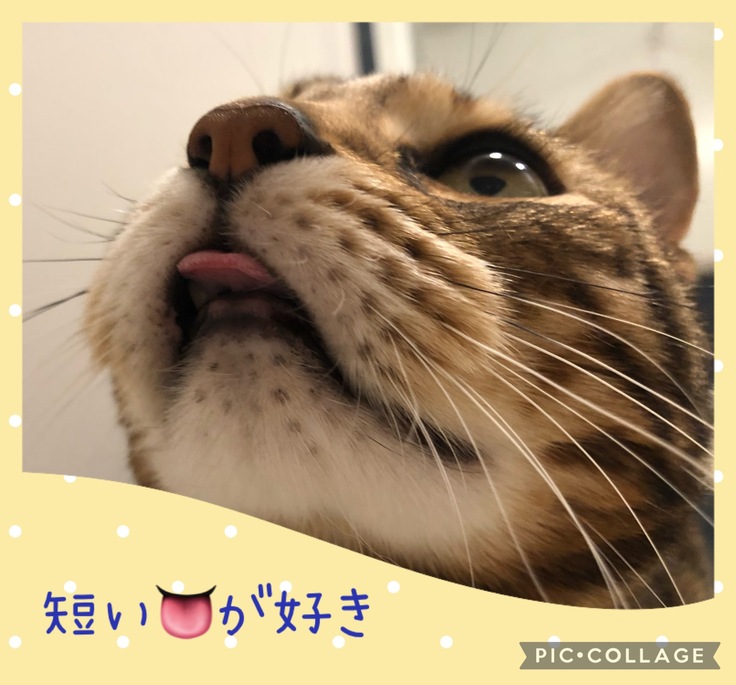 リラックスするとついつい舌が出がちなチャイ。チャイは舌👅が短いのでご飯を食べるのも下手っぴでした🤣