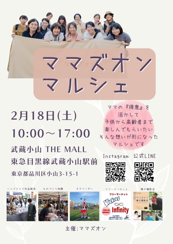 先日、武蔵小山の駅前で行われました「ママズオンマルシェ」に私たちVICKIESを応援する会がバザー出店とVICKIESが演技を披露しに行ってきました!!