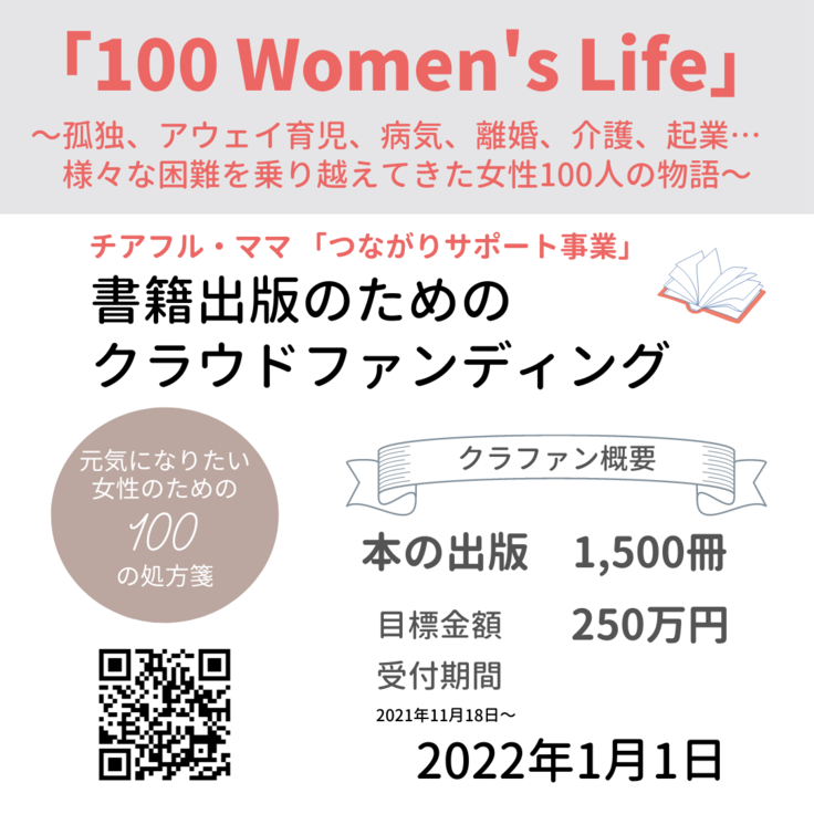 これまでチアフル・ママを支え、応援してくれた女性100人の生き方、100通りの物語がある事を皆さんに紹介するため、一人一人の写真、インタビューをつなげ、一冊の本にして、1500冊作成し、販売します。