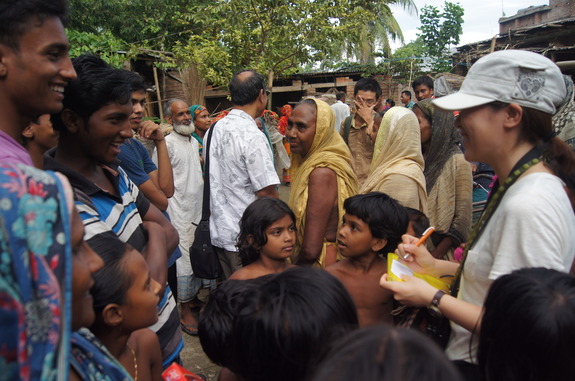 (NGOの活動について、日本語とベンガル語で話をきくメンバー)
