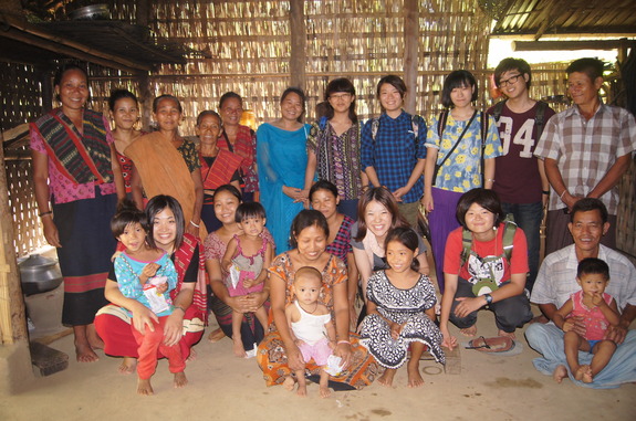 (村でご飯をいただいたチャクマ族のおうちのみなさんと)