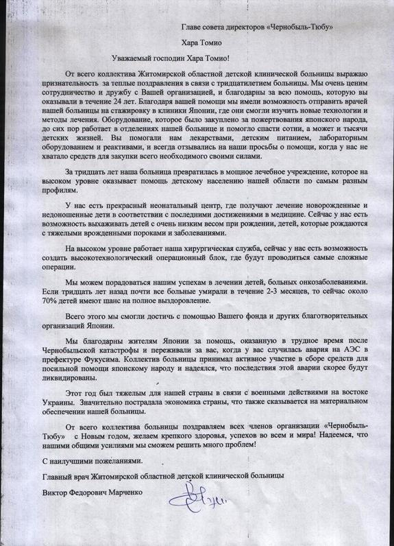 私たちは日本の方々に、チェルノブイリ事故後の困難な時期に行われた