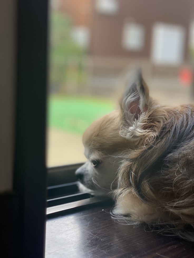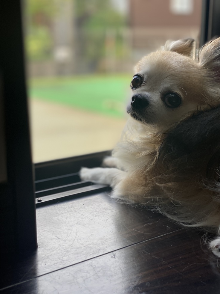 お外タイムの時間が短くて物足りないのか不機嫌なお顔😂💦