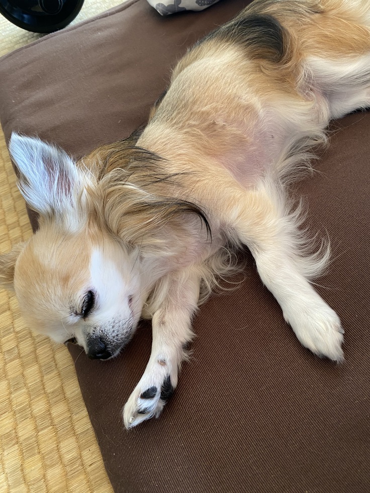 お散歩、トリミングの許可もいただいたので、思い切って手術の時に剃った毛をぼかすように短くカットしてもらいました☺️💓