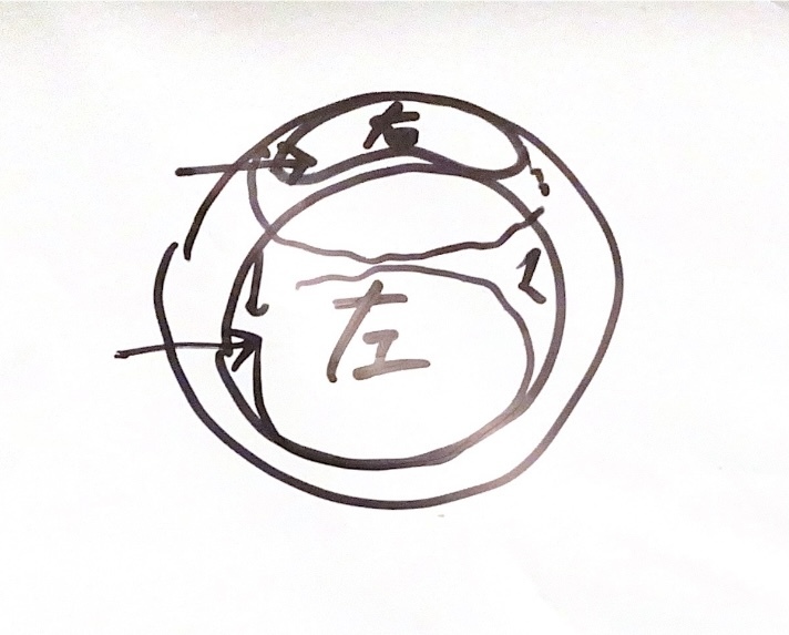 ↓黒いペンで描かれている丸のうち、上側(イラストでいう右)のサイズが左と変わらないくらいになってしまっている