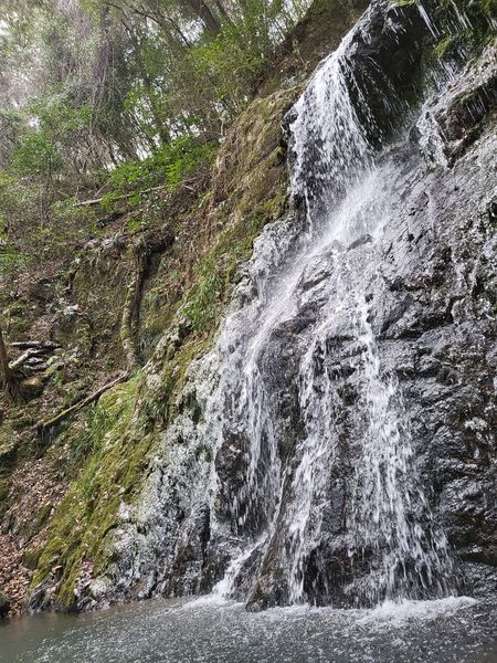 氷柱に日の光が当たってキラキラして、流れ落ちる滝の水が宝石の粒に囲まれたようで~