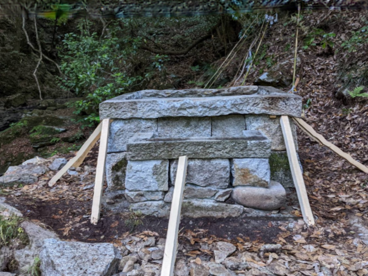 新しいほこらの台座になる石積みの形が出来上がりましたー。