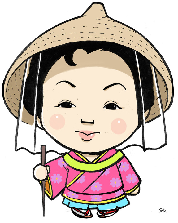 (田所 真さん 国司姿の似顔絵 国司くんキャラクター)