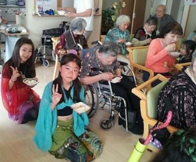 ベリーダンスグループぷっちんべりんずは、笑顔を届ける、笑顔になってもらう事だけを目標に、たくさんの施設や病院を訪問しています。