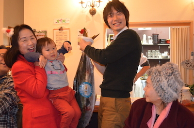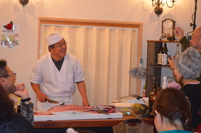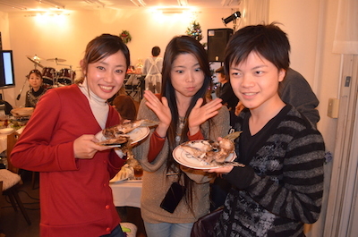 藤田板長による10Kgのぶりの解体ショー、ぶりしゃぶ、ぶり刺身・・クリスマス会は、そんな雰囲気で始まりました。