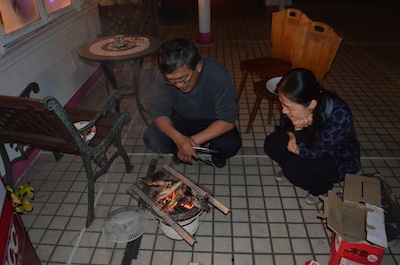 いい匂いをかもし出しているのは、炭火で焼くカマと頭!