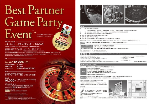 2014年11月22日(土)に、幕張のホテル・グリーンタワーにて、カジノ体験イベントを開催する事と致しました!併せて「まくはり 愛あ~る(IR)大作戦」の出版記念式典も行います!