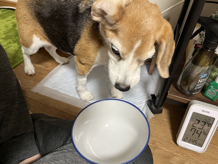 昨日は1日、時間をかけて2食分のドライフードを完食してくれましたが・・・