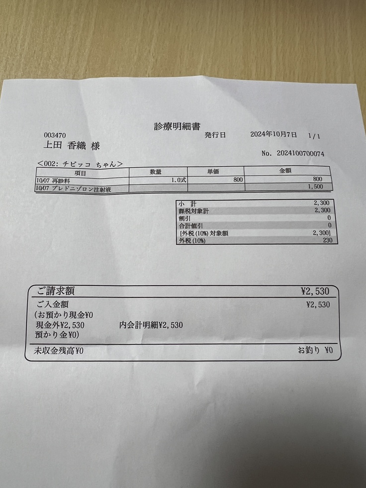 10/7 ひどい水下痢と食べムラ~ステロイド注射投薬1日目と2日目~