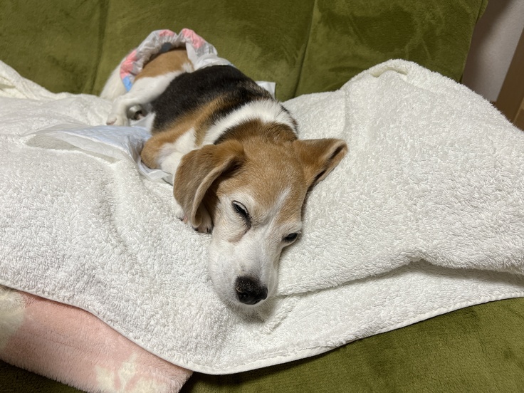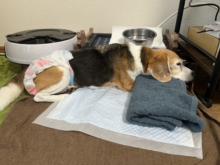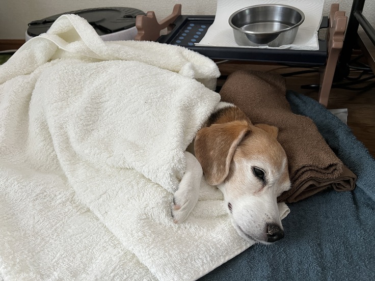 獣医師との相談でも下痢の後の痛みはある程度はどうしても仕方がなく、少し様子を見て午前11時頃に少し落ち着きました。
