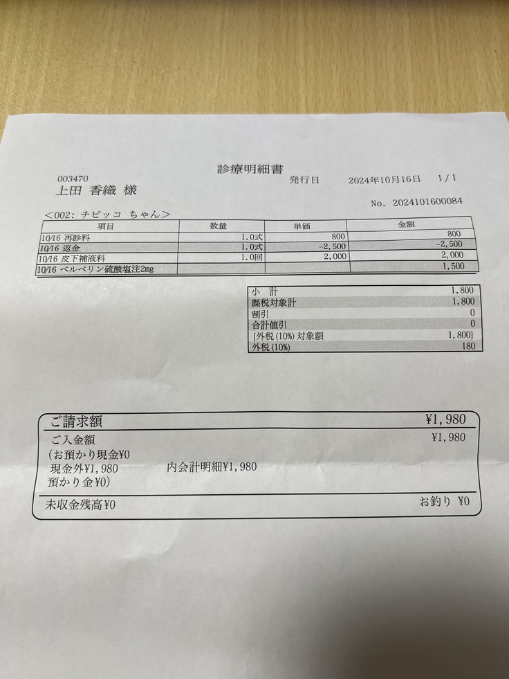 10/16 痛みが続くので急遽動物病院へ行って来ました。