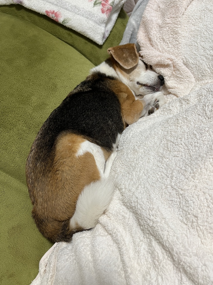 帰って来てからのお昼の手作り食は完食してくれて、ホッとしたのか眠りにつきました。