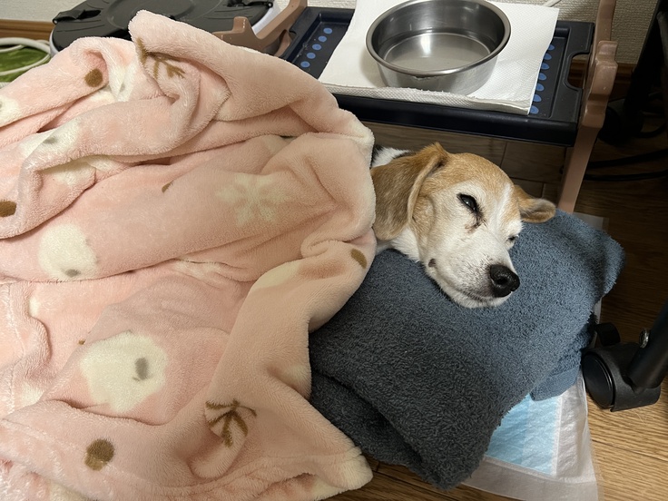 全部出し切ったからか、少しずつ下痢の量も頻度も下がってきて、眠る時間も長くなってきました。