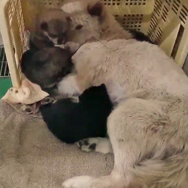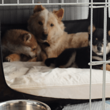 子犬たちも、2匹は里親さんにもらわれ、2匹は母犬と一緒に幸せに暮らしています。