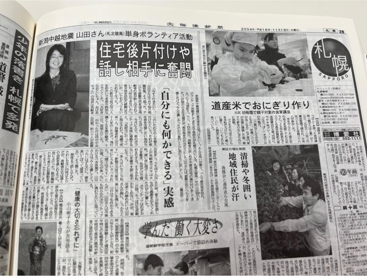 2004年、私が16歳の時に新潟中越地震が起こりました。当時、北海道の札幌に住んでいた私にとって地震や避難所の存在は遠い存在でした。TVのニュースで現地の惨状やお年寄りの方達が泣いている姿を目にした時、自分の祖父母と重なり「何かしたい」という強い想いが芽生えました。母親や担任の先生に相談しボランティア活動へ参加できることになりました。飛行機・電車・バスで近づける所まで進み、最後は徒歩で新潟県見附市の避難所へ向かいました。現地では、お弁当の配布や避難所でのお話相手、被災した住宅の片付け等を行いました。私が手伝いをしていた避難所には、医療派遣チームの方達が来ていました。血圧測定や医療相談の場所には、多くの被災者の方達が行列となり医師や看護師さんとお話をしていました。そこで見たお婆さんのホッとした笑顔を見て、自分もいつか看護師になって、こんな風に人を笑顔にできるようになりたいと考えるようになりました。帰郷後、北海道から初めて単身ボランティアに行った高校生として取材も受けました。その時に話した「自分にも何かできる」という想いが自分の原点となっています。
