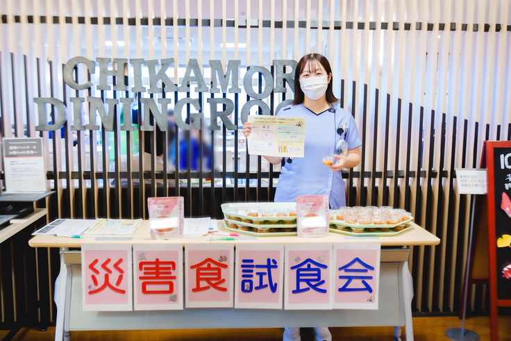 昨日は、近森病院臨床栄養部防災班による「災害食試食会イベント」が食堂にて行われました。職員に災害食の備蓄状況やどんな災害食があるかなどを知ってもらい、災害への意識を向上させるという取り組みです。昼食に訪れた人は次々に本日の災害食試食「トマトリゾット」を受け取り、クイズ・アンケートに記入していました。