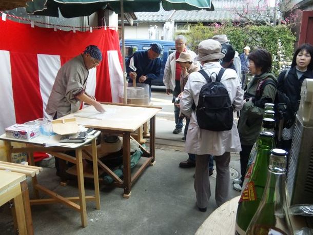 望桜亭では、手打ちそばサークル「マキノそば宿」のみなさんによる、そば打ちのデモンストレーションも!(望桜亭でのそば打ちの様子がマキノそば宿のサイトで紹介されています)