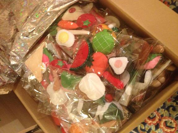 しかし、中でも一番喜ばれたのがフェルトや布で作った手づくりのおままごとセットや魚釣りセットでした。手づくりのフェルトの玩具。私の娘には、精神的な症状が出ている娘を心配した叔母が、手づくりのおままごとのフェルトの玩具を送ってくれたのです。娘の喜びようと徐々に気持ちが落ち着いていく様子を間近で見て、「被災地の子どもたちに必要なのは手づくりのぬくもりだ!」と考えました。それからは、手づくりでフェルトの玩具を作っては、被災地の子どもたちに送り続けました。送った幼稚園からは毎日毛玉が出来る程遊んでいると報告を受けています。