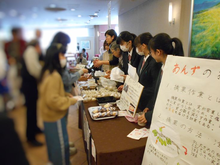 こんにちは!屋代高校1学年、杏グループです。 屋代高校家庭科の中宮先生、地元の商店畑野商店さんにご協力をいただき、千曲市の特産物杏をさらにPRすべく総合的な学習として3人で活動しています。