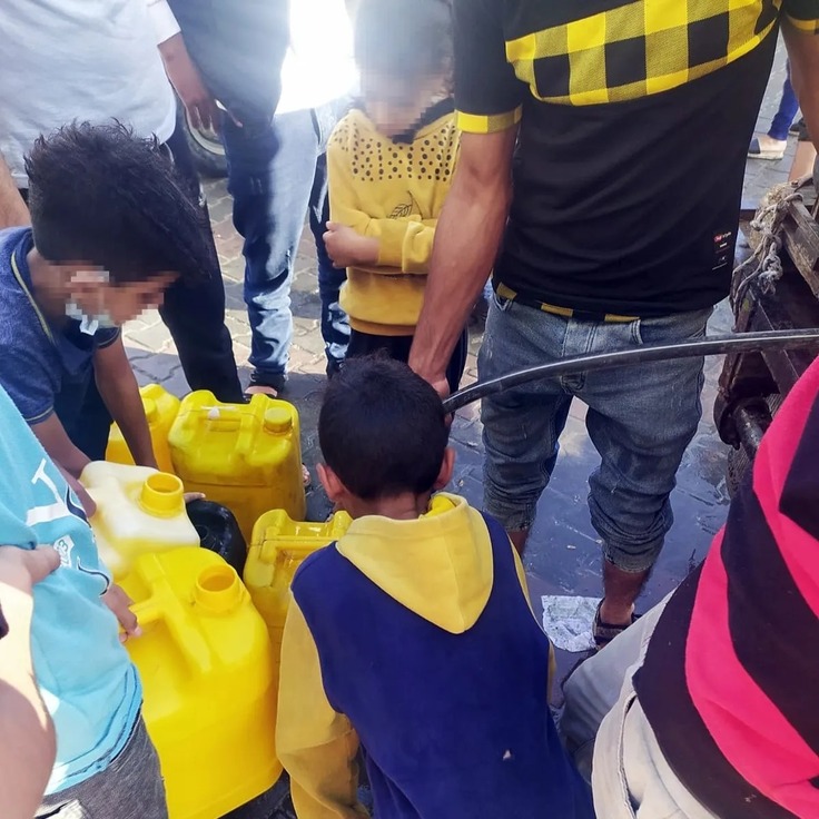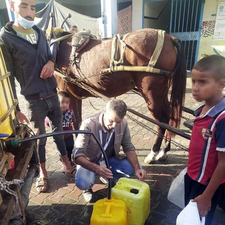 ガザ地区で、学校に避難をしている約6,000人の人々(多くは子どもと女性)に安全な水の配布を行いました!現地ではガソリンなどが不足しており、ロバが運搬を担っています。